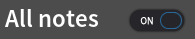 As long as the All note switch is set to “OFF”, only the notes marked with green in the set scale can be played. However, if you want to play all notes, you can set the “All notes” switch to “On”.With this setting, the “Notes remap” switch will always jump to “OFF”.