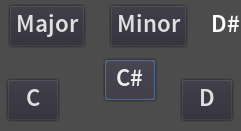At the top left are 2 buttons: “Major” and “Minor”, which you can use to switch between a major, minor and a custom scale
